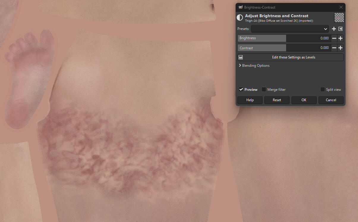 FYI - The Retexture Diffuse contains extra blushing around the muscle structure, knees, elbows, collarbones, and contains subtle veins across the skin. This is optional and interchangable. If you want to use regular TBSE Diffuse but would like the texture from the Retexture normal, then you can use these together.You will also need to make sure that whatever overlays you are using - Scars, tattoos, body hair ect, is above the Diffuse layer.